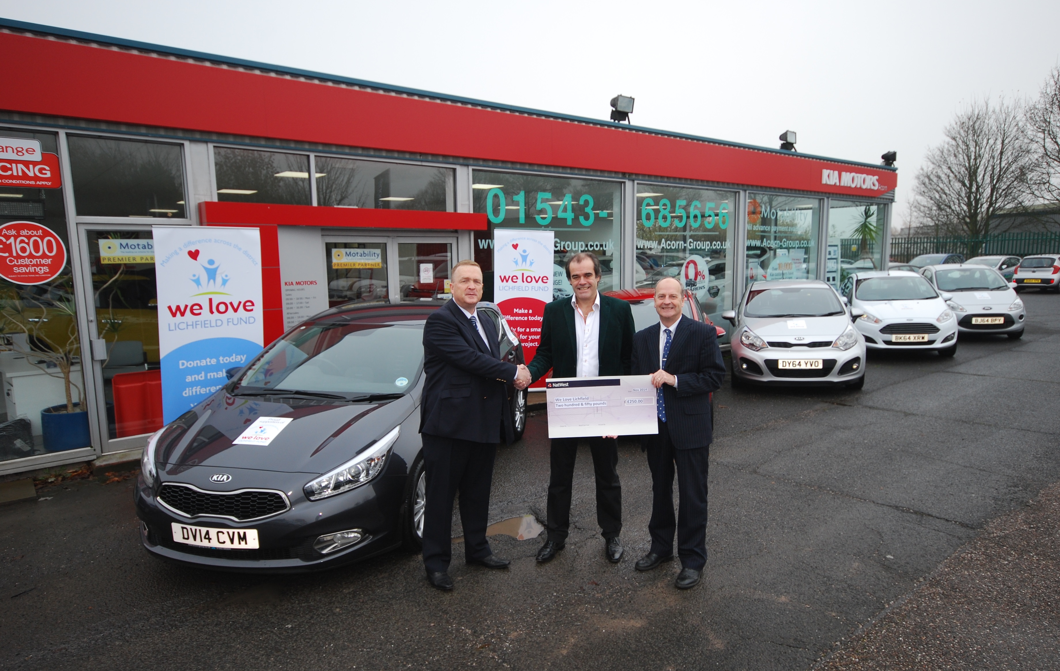 Burntwood Ford and Kia dealership, The Acorn Group and its leasing company Motor Contracts, have chosen We Love Lichfield as its 2015 local ‘charity of choice’ and announced a series of fund-raising and promotional projects to support the fund.